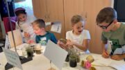 Nachdem sie mit dem Bus ankamen, wurden sie von einem Mitarbeiter freundlich empfangen. Er führte die Kinder und die begleitenden Erwachsenen in das Labor. Verschiedene Stationen zum Thema „Wetter“ waren bereits aufgebaut. Zu den Aufgaben, die die Jungen und Mädchen lösen sollten, gehörten z.B. das Messen von Temperaturen unterschiedlicher Materialien mit und ohne Sonneneinstrahlung, der Bau eines Windmessgerätes, die Entstehung von Wolken, das Messen von Windstärken, das Kennenlernen unterschiedlicher Wettermessgeräte und Experimente zur Funktionsweise eines Thermometers. Besonders spannend fanden die Kinder die Station, an der sie selbst einen Wetterbericht erstellen durften. Nach einer kleinen Vesperpause ging es dann im Labor weiter. An einer weiteren Station wurde anschaulich erklärt, warum es unterschiedliche Jahreszeiten gibt. Das Modell zeigte, wie die Sonneneinstrahlung im Laufe des Jahres sich auf die Temperaturen der Erde auswirkt. Anhand eines Schaubildes erstellten die Schülerinnen und Schüler eine Grafik, die den Wasserkreislauf der Erde verdeutlichte.