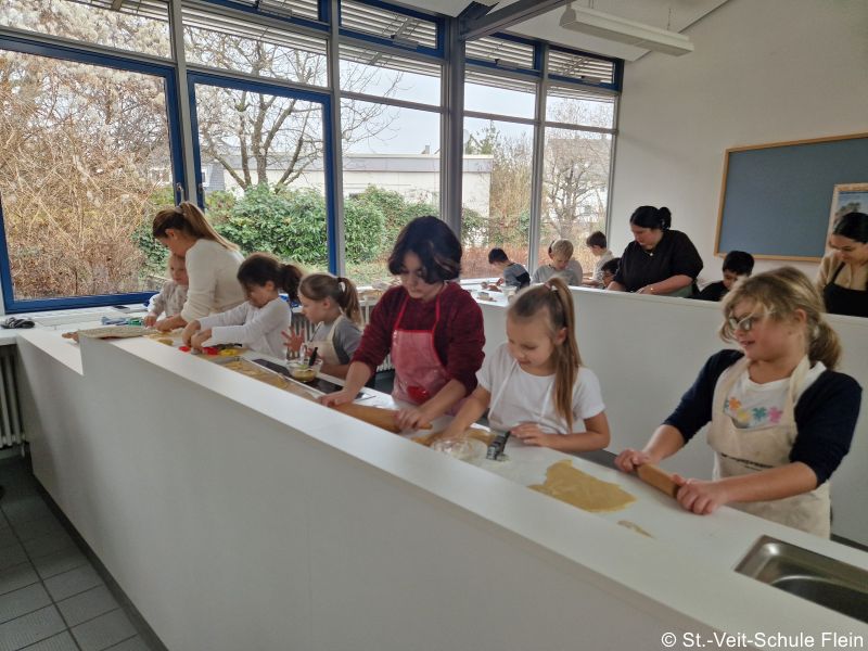 In der Adventszeit erlebten die Schülerinnen und Schüler eine besondere vorweihnachtliche Tradition: Das Weihnachtsbacken in der Schulküche.