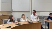 Anschließend durften alle Kinder dem Bürgermeister am großen runden Tisch, an dem sonst der Gemeinderat tagt, vorbereitete Fragen stellen, die er gerne beantwortete, z.B. „Was gefällt Ihnen am Beruf des Bürgermeisters so gut?“, „Wie wird man Bürgermeister?“, „Wie sind die Arbeitszeiten eines Bürgermeisters?“ oder „Haben Sie schon früher mal in einem Rathaus gearbeitet?“.