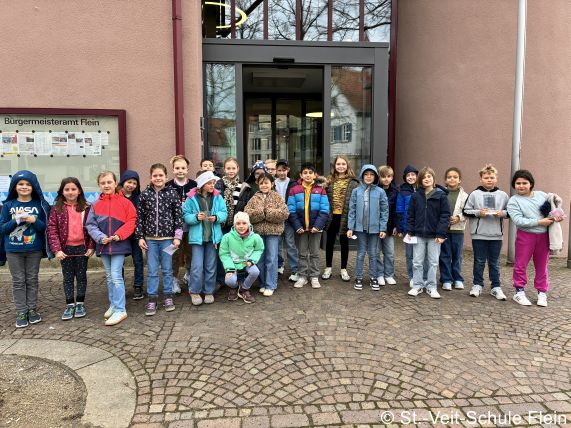 Gemeinsam mit ihren Klassenlehrerinnen liefen sie am Vormittag von der Fleiner Grundschule zum Rathaus.